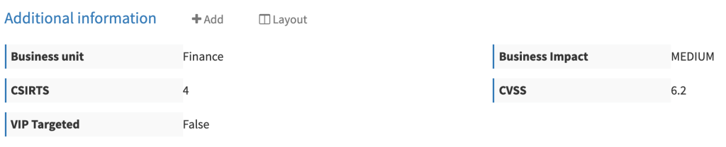 The attribute mentioned earlier is taken into account when correlating Alerts with existing Cases : the Similar Cases view in the Alert preview dialog.